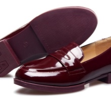 Lacquered pairs, made in soft contrast of burgundy base and black inserts on the toe, are edged along the top with patent leather. A two-tone bow bow is secured with a pair of burgundy buttons. A black clasp and a sole of the same color complete the design. Such a model will give gloss to any, even banal form.