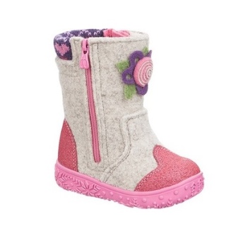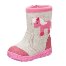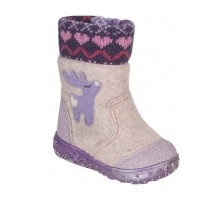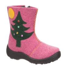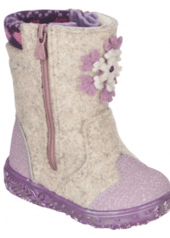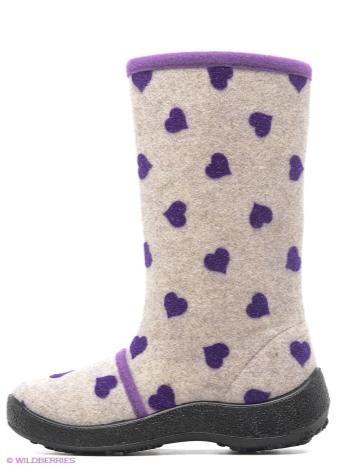 For charming little women of fashion, boots with wool are presented in purple, pink, gray, white and beige colors. As a decor, various applications from felt are used, decorated with rhinestones, which girls will like. It can be winter motives - Christmas tree, deer or snowflakes.