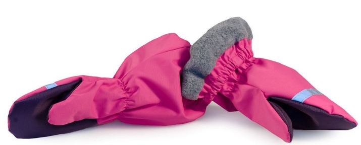 They are made of impervious polyamide. Faux fur is used as a lining. The baby's hands always remain warm, even in severe frosts. Thanks to the presence of the elastic bands located on the edge and on the wrists, the snow does not get inside.