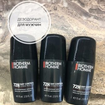In the men's deodorant line, Biotherm pays great attention to controlling sweating. The company produces formulations with a validity period of 24, 48 or 72 hours and offers the opportunity to choose the method of applying the product. Among the products that deserve special attention are the following.