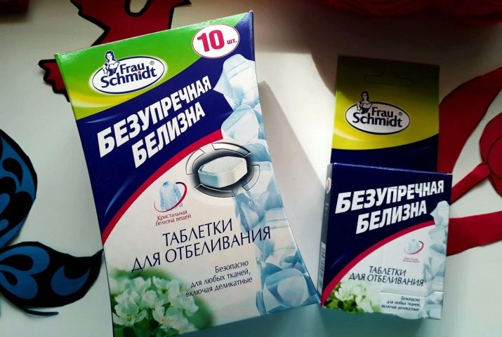 Company Frau Schmidt well known to the hostesses. In the assortment of this manufacturer there are a lot of bleaches with soft action and special stain removers. They are based on bile concentrate. Any of these agents gently affects the material, preserves its structure and the brightness of colors. With any of them, it will not be a problem to wipe off your favorite thing.