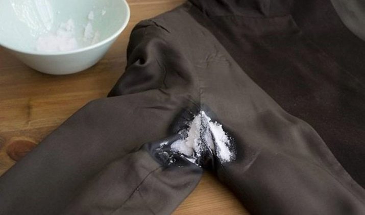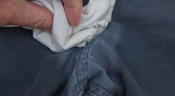 Dark fabric cleans well with laundry soap. If this method does not give a positive result, then alcohol, lemon juice and dishwashing detergent will come to the rescue. Demonstrates high efficiency a mixture of soda and vinegar, but it can not be used on delicate fabrics.