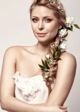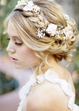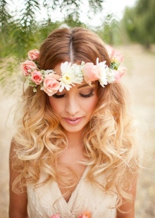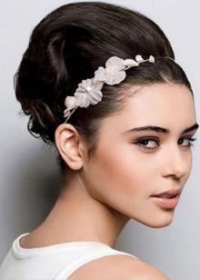 The rim with flower decoration is an original and at the same time sensual element of a festive hairstyle. There are models with skillfully fashioned flowers made of polymer clay, but a real sensation will make an accessory of real flowers.