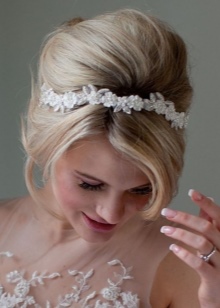 - This accessory should fit perfectly into the hairstyle. For complex and high hairstyles, it is better to choose a thin and unpretentious rim that will not overload the already lush styling. For the hair pulled back, various models of such jewelry are suitable.