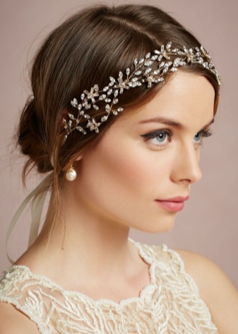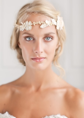 An elastic band for creating Greek hairstyles has become a popular wedding accessory recently. Such an ornament will allow you to create a simple hairstyle and will suit the bride's dress in vintage or Greek style.