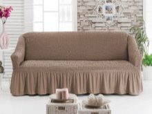 Looks beautiful in a modern interior and furniture covers, which produces Turkish factory Karna. Products are presented in a huge selection of colors, the width of their seats is from 210 to 260 cm, depth - from 70 to 80 cm. Covers are fixed using special ties. They are made of knitted fabric, which has elasticity, high wear resistance and is pleasant to the touch.