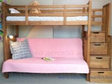 - Bunk bed with eurobook. As in the previous version, here the bed forms a sleeping place, while the sofa set from below acts as a guest area during the day, and when night falls, it unfolds.