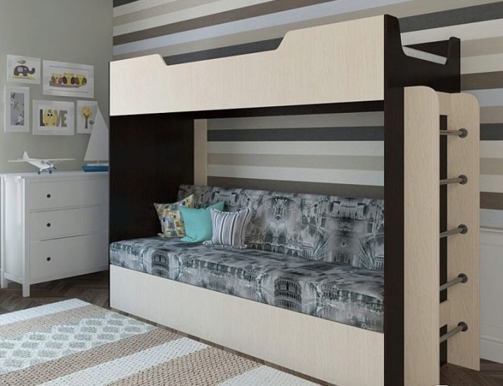 A feature of bunk beds with a sofa is their compactness. This is especially true for small rooms. It captivates a wide variety of materials and models that are used for production.