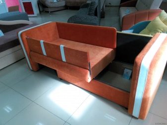 - Sofa with additional functionality. Such furniture does not have a sliding mechanism at all - it is a monolithic structure with storage units placed directly under the berth.