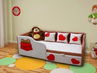 - Sofa with soft sides. A popular model for young children. This design is safe, it protects the baby from injury in case of careless movements.
