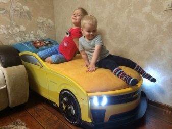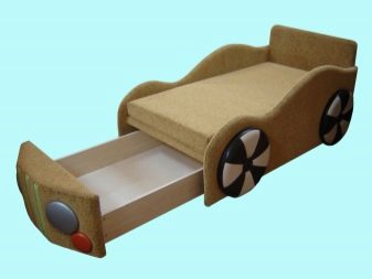 Jacquard, teflon-coated fabric, chenille are used as upholstery. As for the size of the baby car bed, they can vary. The size is considered to be optimal 190x90 cm. According to consumers and manufacturers, such furniture is quite compact, and from the many existing options, you can choose a sofa that fits perfectly into any square meter in size.