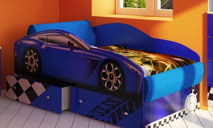 - In the form of a racing car. Creating these models, the manufacturer did his best: today you can find a huge number of sofas, which are racing cars in miniature.