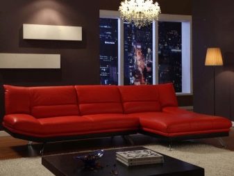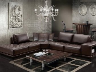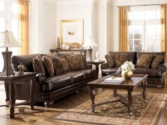 On the modern market, it will be possible to purchase leather sofas in various shades: from elite brown to miniature blue. The classic design of the living room implies the presence of large black or chocolate patterns. They are perfectly combined with decor elements made in bright colors. White pillows on a dark sofa look no less spectacular. Brown luxury items are also suitable for style. modern, country and minimalism.