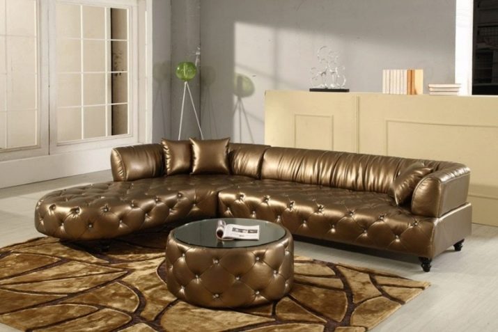 Warm shades (gold and bronze) are suitable for spacious living rooms, in which there is little natural light. Equally popular leather sofas in blue and yellow. Such products look great in a small room. These colors go well with pastel colors.