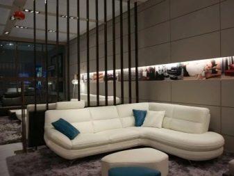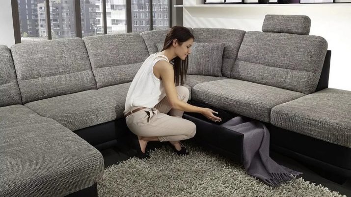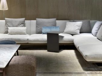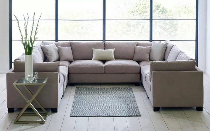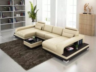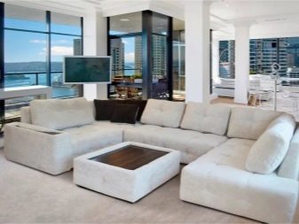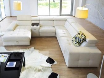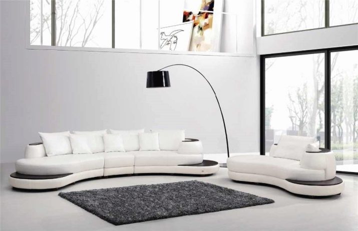 It will require a lot of space, so this form is not suitable for small living rooms. The model looks stylish, but it is not entirely practical. For example, a sleeping place here is in doubt.