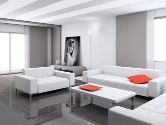 Living room in a modern style involves the use of original upholstered furniture. Large and small models of sofas are selected not only taking into account the overall composition of the interior, but also in terms of comfort and convenience.