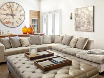 - Sectional sofas. Externally, this design looks like ordinary furniture. Individually selected design, shape, size. You can include in the order additional items needed for your living room. This model does not understand, it is solid, but consists of several sections for special purposes: soft corner, cells, accessories of various kinds.