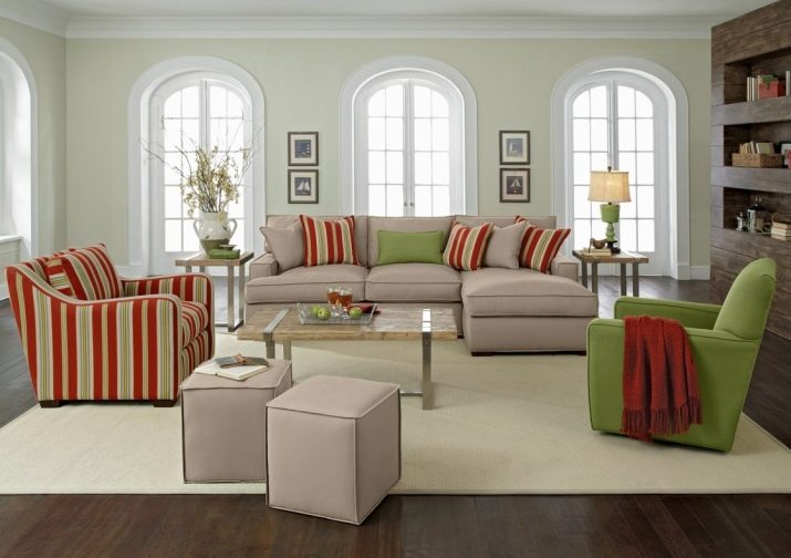 The size of the furniture is of great importance when choosing, and much depends not only on your desire, but also on the area of the living room, the overall space. In the small living room, a huge sofa will clutter up all the free space and will look disproportionate. Too small a sofa will be lost in a huge hall.