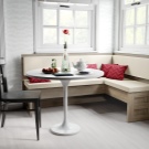 Such sofas must have increased strength, withstand any load and be resistant to contamination. This is because the kitchen is considered a room with high humidity, in which odors are constantly collected when cooking. In addition, it is worth paying attention to the size of the structure, preferably give preference to compact modelsthat would save space.