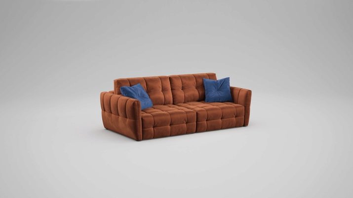 This model is very popular, as it is suitable for people with different taste preferences. This sofa has a deep landing, which provides a comfortable rest. The originality of the furniture gives the armrests and two decorative pillows.