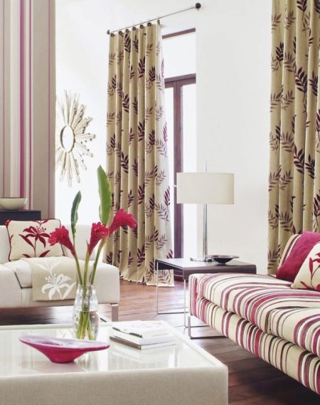 Combining opposing shades helps achieve impressive contrast. The room gives cheerfulness and brightness a combination of greenish tones with lemon color, pistachio or yellow shades with purple colors, a combination of coral and turquoise colors. Contrast coloring is characteristic of youth style. A bright sofa and a pale armchair unwittingly attracts the attention of guests.