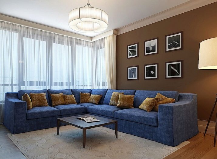 - Brown. A difficult combination of colors, because if it is incorrect to choose the details of brown color in combination with a blue sofa, then the elaborate artsy interior of the room will turn out.
