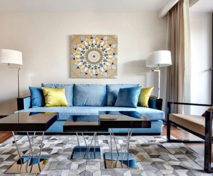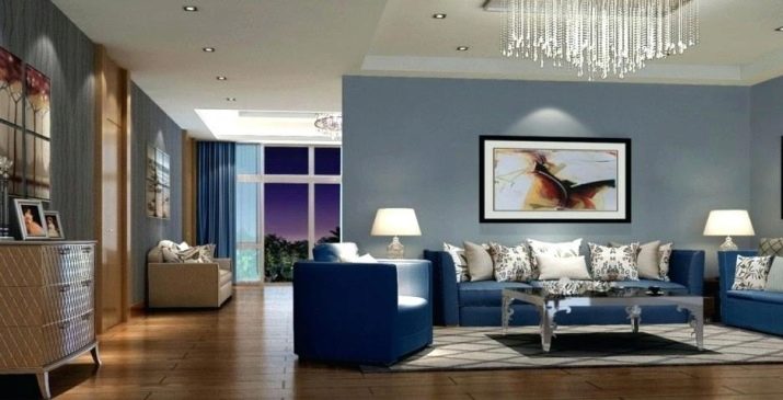All because blue sofa attracts attention. And also a lot depends on the proper lighting of the room.