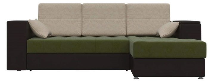 - Atlantis from Mebeliko (Russia) - This is a functional and spacious corner sofa for sleeping, which is equipped with a folding Eurobook mechanism and a spacious drawer. The design is able to transform into a comfortable double place measuring 147x197 cm. This model is durable, because its frame is made of pine. The upholstery of the furniture is represented by faux leather and velveteen, which gives it chic.