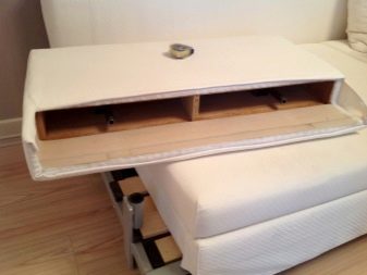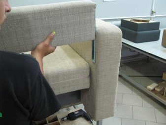 - Examine the short part. If the frame with the seat are connected with special fasteners, it is necessary to unscrew the nuts and remove the soft part. If there is a back on the short part, we carry out its dismantling.