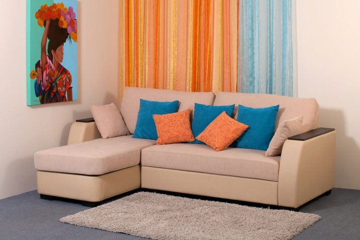 - Most modern corner mini sofas are made narrow, so are considered not the most comfortable. It is not possible to place decorative pillows on the furniture of such a device, because they completely cover the seats.