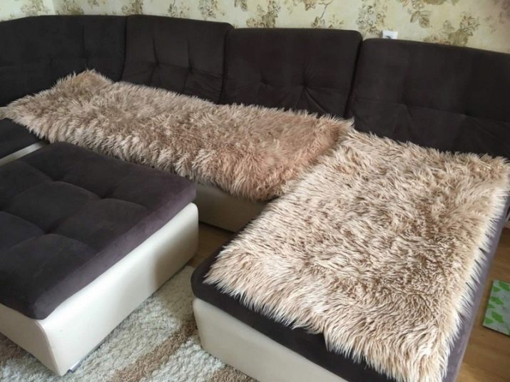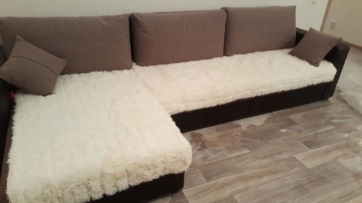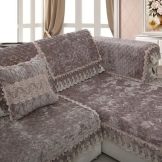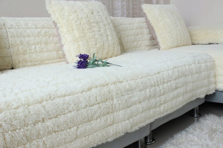 Such bedspreads are soft and also have a long pile. The basis of the material is cotton, but the pile can be made from cotton, silk and even synthetics. An angular sofa with such a blanket looks warm and cozy.