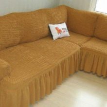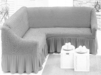 Most often, such models of bedspreads are sewn to order. This applies to those sofas that have an unusual shape. In order to pull such covers, it is necessary to disassemble the corner into separate parts. After that, they need to put on covers that are fixed tight enough. When such a sofa is assembled, the cloak is almost indistinguishable from the upholstery.