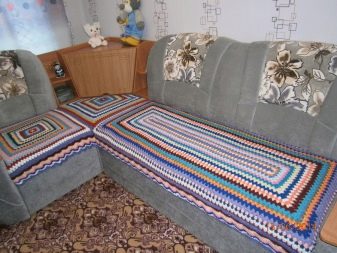- You can buy wraps for corner sofas in specialized stores. In addition, they can be sewn to order and just knit them yourself.