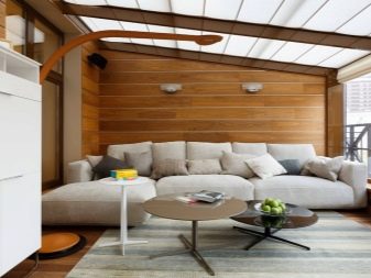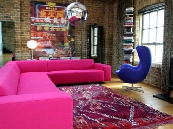 - Loft. A popular direction in which the sofa can be both very bright and inconspicuous. Most often, a corner sofa in such a room performs the function of zoning and is placed in the center.