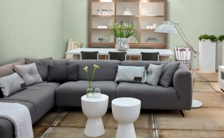 An important moment when choosing the color of the corner sofa is the general style of the room. Hue should fit into the concept accurately and organically.