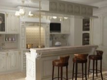 On the kitchen carved facades, figured buffets and openwork regiments harmoniously look. Of course, chairs with unusual back and legs should be placed here.