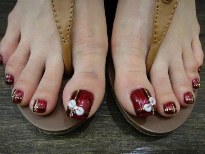 If you do not like the simple version of the pedicure, then you can make some pattern on the nail plate. Of the options on how to do this, there are two main ones: choose one of the options described below or come up with your own version.
