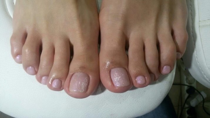 Therefore, many representatives of the fair sex strive to make a manicure not only on her hands, but also on her feet. This makes them even more compelling. And one of the most popular pedicure options is applying glitter varnish.