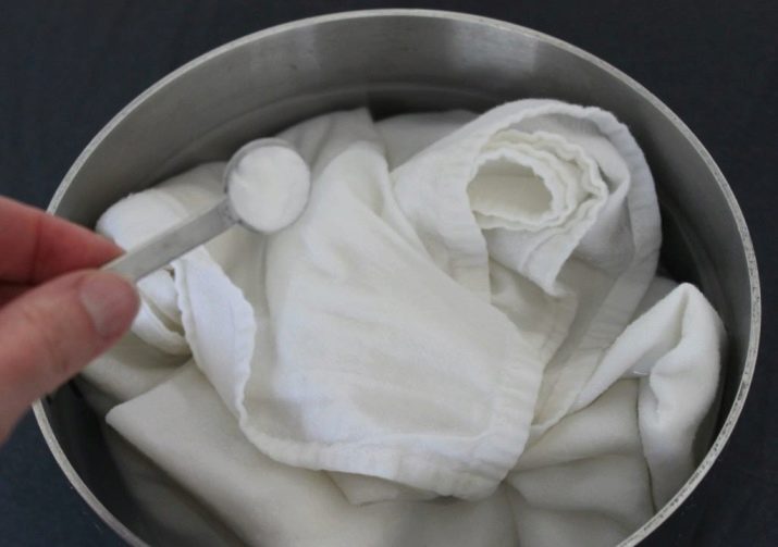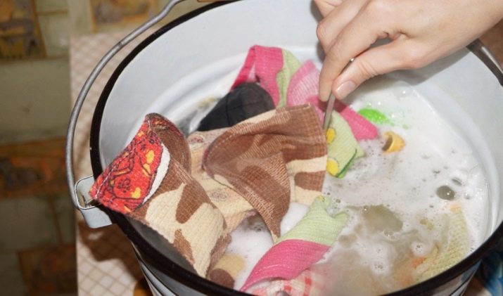 - Towels are dropped into the finished solution. If the dirt is old and stubborn, the fabric must be pre-soaped manually.