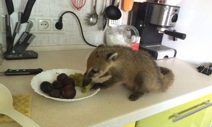 If desired, you can try to train a raccoon. Thanks to excellent appetite, he will be everything. You can feed it with meat, vegetables, nuts, dairy products and even eggs. You can’t leave your pet unattended, because then the animal may be interested in the development of cabinets and damage to wallpaper. The strip loves affection, and therefore reconciles with the presence of man.