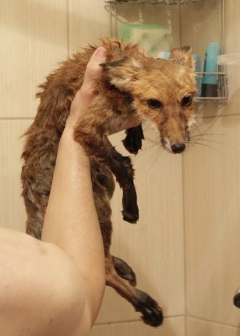 Many breeders are interested in whether to bathe a domestic fox. There is no urgent need for this, but if the pet is very dirty, it must be washed using a special hypoallergenic shampoo for dogs. It is advisable to choose a product that does not have fragrances.