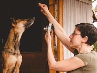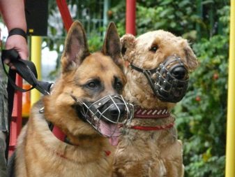 - if she is tied to a leash and is wearing a muzzle (this applies to dogs of an aggressive breed (for example, fighting dogs);