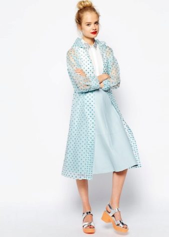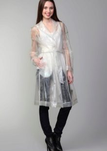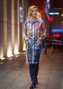 This model will definitely protect you from the rain and will not let wet drops spoil your mood. A transparent elongated cloak can be almost invisible, but if you want to add a twist to an image, choose a model with a colored hem.