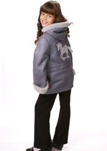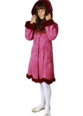 Sheepskin overalls - an option for very young girls. Such things are comfortable, have a zipper, provide maximum warmth and comfort, wide legs are easy to put on a child. Overalls are equipped with a deep hood, which can be tightened with ropes or fixed with Velcro. The length of the sleeves and trousers is usually adjusted by cuffs.