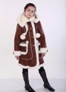 The so-called pilot coat looks stylish and modern for a little fashionista, this is a sheepskin coat with a jacket style. However, this thing is permissible to wear only in the thaw, since it has a waist length or slightly lower.