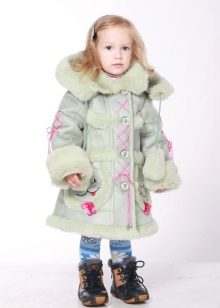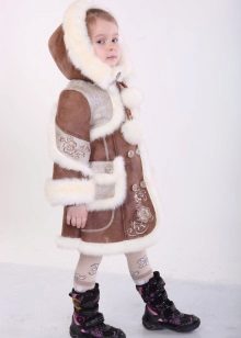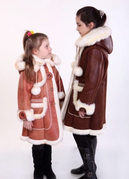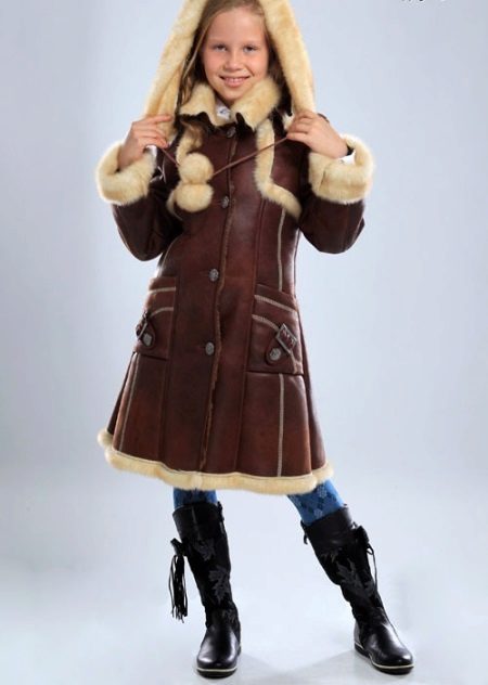 All girl's sheepskin coats, as a rule, have a hood with a fur trim (natural or artificial fur), which will even better protect the baby from the vagaries of the weather. In addition, such a thing should in no case absorb or let water through. Therefore, designers of children's clothing developed such a model as a sheepskin coat-leather coat with reinforced waterproof properties.