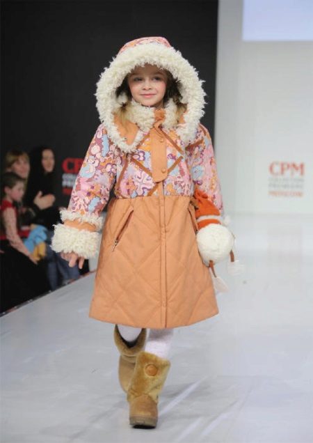 Parents who like to show off their little daughter's outfits can purchase a coat-coatSuitable for festive events. This is an extended floor model with a childishly elegant look.