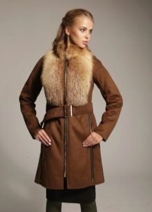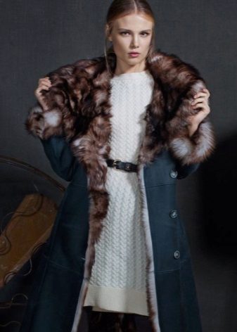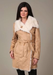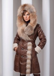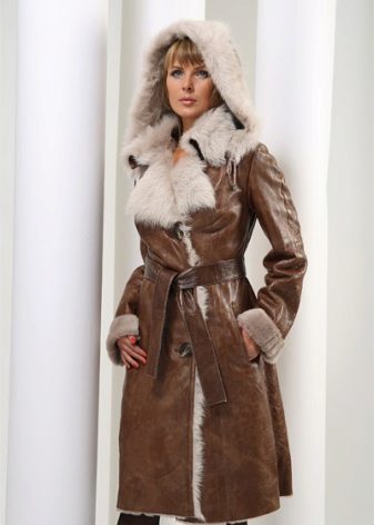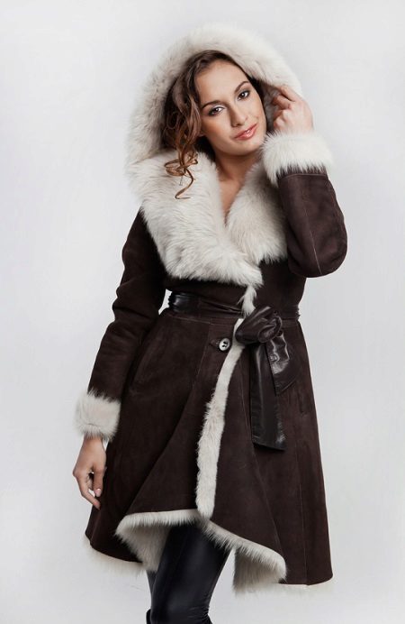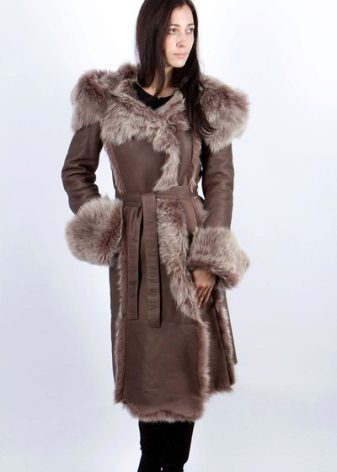 Not only a collar or cuffs are decorated with fur on sheepskin coats, but also a hem or a hood. For decor, the choice of fur usually stops at the mink, arctic fox, fox or rabbit. The edging from a sheepskin, light shades looks no less beautiful.