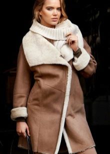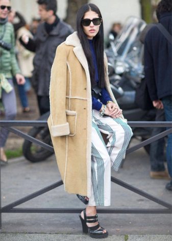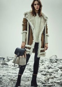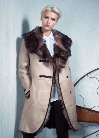 Color schemes also remain mostly minimalist. But it all depends on the style in which the sheepskin coat is designed. Classic colors are brown, blue, black, beige. But the clear lines of the trench are supported by the pastel colors of cream, gray, cream shades.