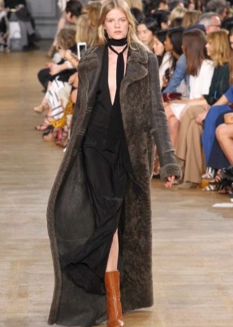 Outerwear on the floor, certainly a leading trend. Female sheepskin coats were no exception. Toe-length and closing shoes, they allow you to diversify the image of accessories and accents. Long scarves and stoles will combine with floor-length sheepskin coats. Unlike a fur coat, it will be possible to pick up a headdress of any texture and style to a sheepskin coat.
